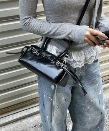 Midnight Tulle Lace Charm Satchel in Black